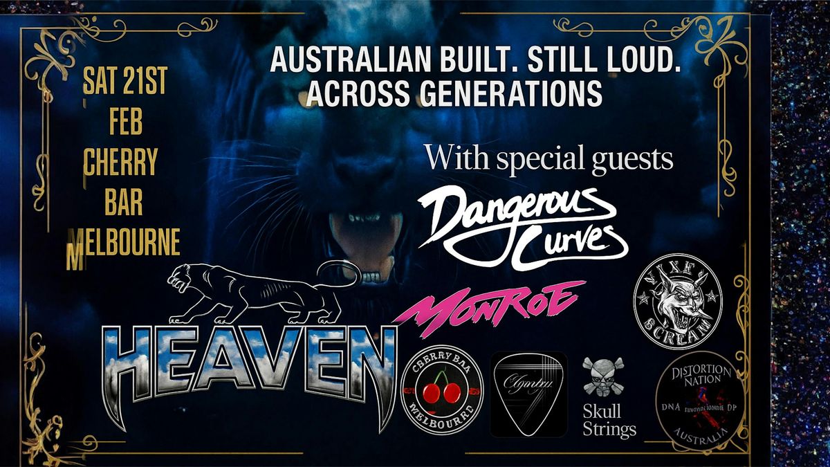 Don't miss the legendary HEAVEN, masters of the '80s hard rock scene, proving they are still louder than ever. They are joined by the new guard: the electrifying Glam Metal of Dangerous Curves, the party-rock anthems of Monroe, and the ferocious hard rock of Vixen Scream.