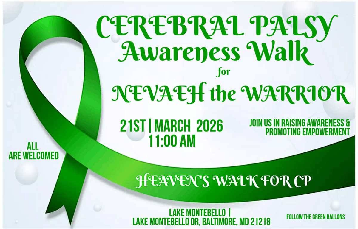 Join us for Heaven's Walk for CP, an awesome in-person event to support Nevaeh the Warrior where we come together to support those fighting cerebral palsy. It’s all about community, good vibes, raising awareness and making a real difference. Lace up your sneakers, bring your friends, and enjoy a fun walk filled with energy and heart. Don’t miss out on the chance to be part of something special!