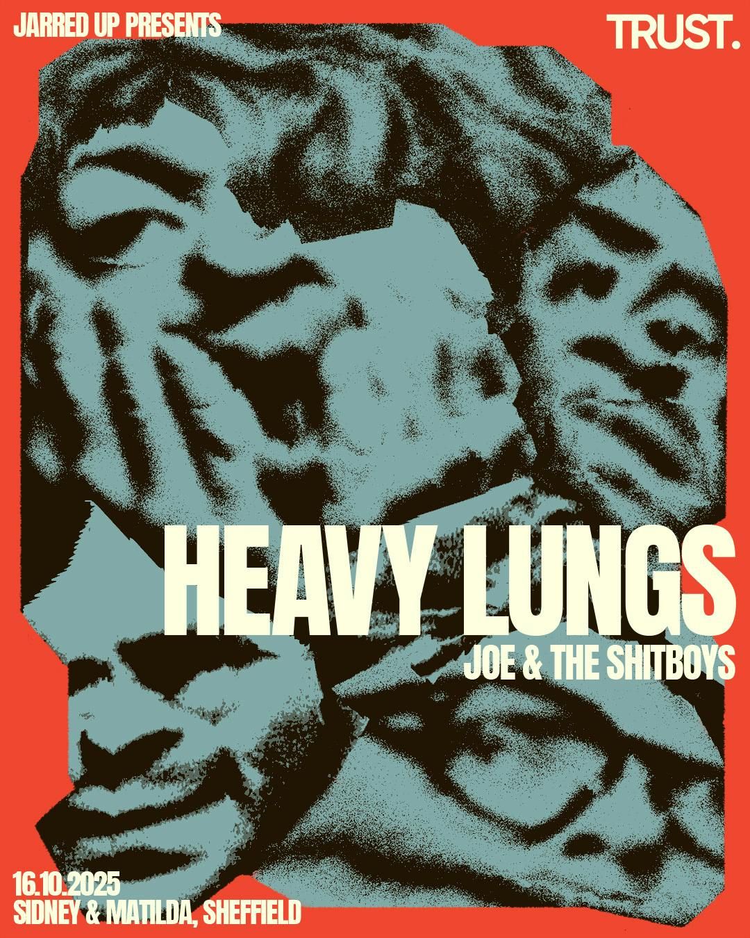 Heavy Lungs bring raw, loud and uncompromising energy to their shows taking influence from the rowdy and liberating gigs of the 80s and 90s. Rising brutally fast from the get-go, they have shared stages with comrades IDLES, The Oh Sees, METZ, JOHN and more.The band are now touring their explosive, furiously fun and unique brand of punk extensively across the UK and Europe. Fresh off the back of their 2023 critically acclaimed debut album 'All Gas No Brakes' released with Alcopop! records, they have gone on to receive significant attention from the likes of Steve Lamacq and Iggy Pop. Heavy Lungs is a rock'n'roll sandwich you didn't know you needed, but now it's in your lunchbox every day.Tinnitus or a relentless earworm for days to come, a Heavy Lungs show is one to remember. 'A real Whammerbanger!' - IGGY POP'Biting powerful punk that seeing frontman Danny nedelko snarling' - DIY'Chaotic brilliance, made up of tempestuous distortion and hellish wails' - Stereoboard'Their music taps the same vital energy as the pioneering post-punk of Joy Division, rambunctioussquall of Iceage, and uncompromising attitude of IDLES' – Bristol In Stereo'Imagine going toe to toe with Minor Threat and early Black Flag, this is raw,uncompromising punk rock.' - HMV