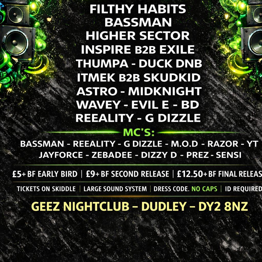 HEAVY SOCIETY DNB (DUDLEY) FILTHY HABITS / BASSMAN / EXILE / HIGHER SECTOR / G DIZZLE/ DUCK DNB / INSPIRE / REEALITY & MORE IN THE DESCRIPTION BELOW
