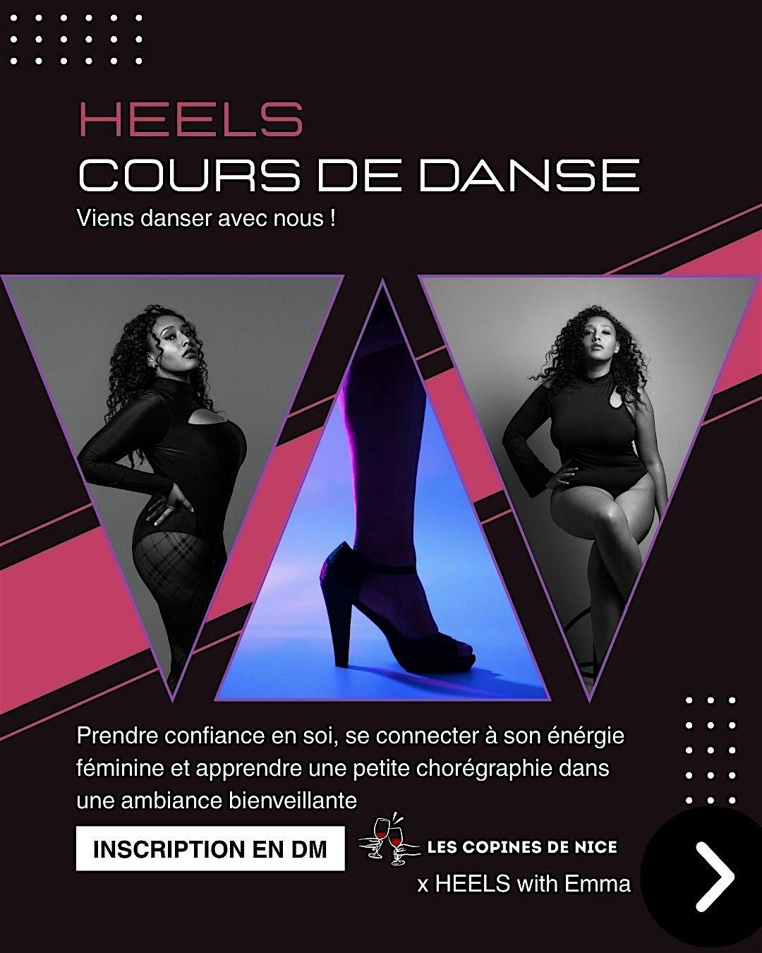 Rejoins-nous pour un cours de heels accessible à toutes, que tu sois débutante ou déjà à l’aise 💫
