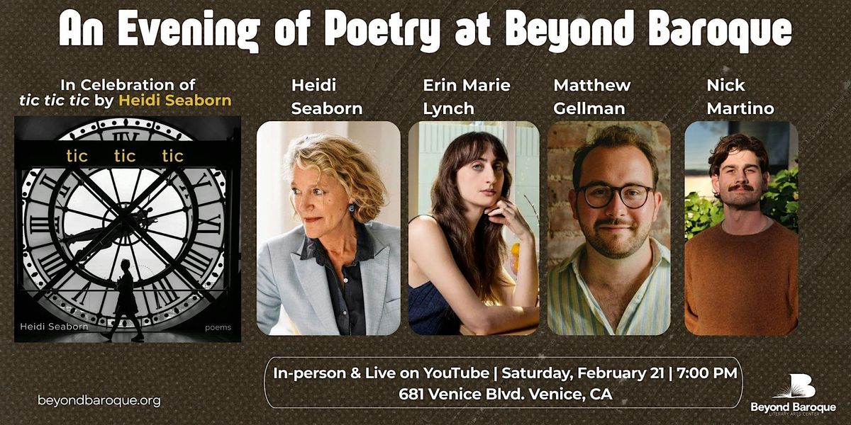 Join us for a celebratory reading featuring new and selected work by poets Heidi Seaborn, Erin Marie Lynch, Matthew Gellman, & Nick Martino.