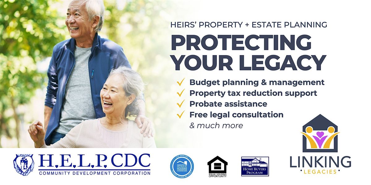 In this session, you’ll learn the basics of heirs’ property and estate planning in plain language—and how to take practical steps to protect your legacy. H.E.L.P. CDC also offers free support services that may include budget planning, property tax reduction support, probate assistance, and free legal consultation, based on your needs.