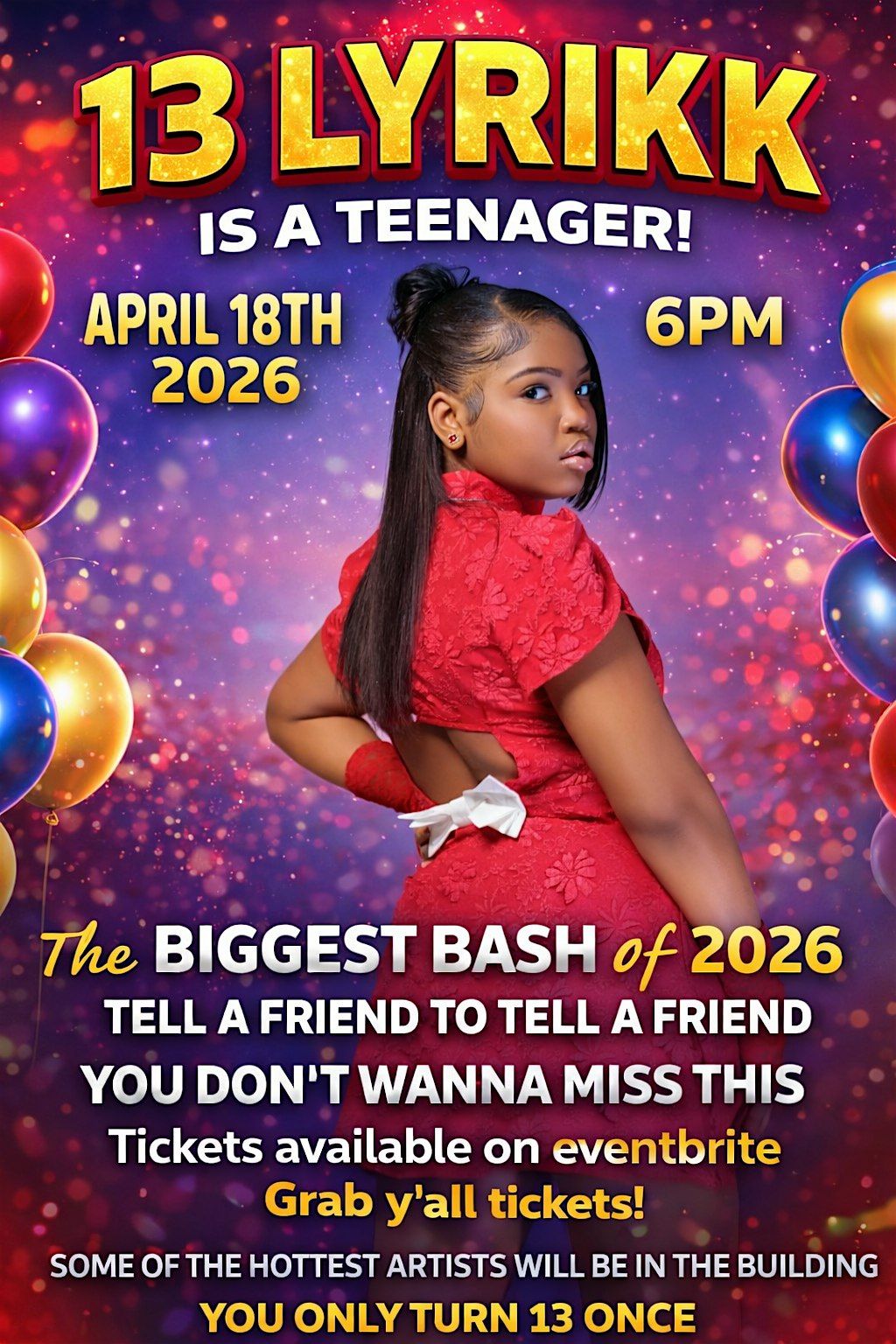 Get ready to celebrate LyriKK's birthday in style! Join us for an epic in-person party filled with good vibes, great company, and tons of fun. Whether you're here to dance, chill, or just soak up the birthday energy, this bash is the place to be. Don’t miss out on the excitement – let's make LyriKK’s 13th birthday one to remember!