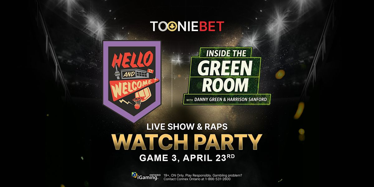 Raps Game 3 Watch Party (Date TBD) featuring Inside the Green Room with Danny Green x Hello & Welcome, presented by ToonieBet.