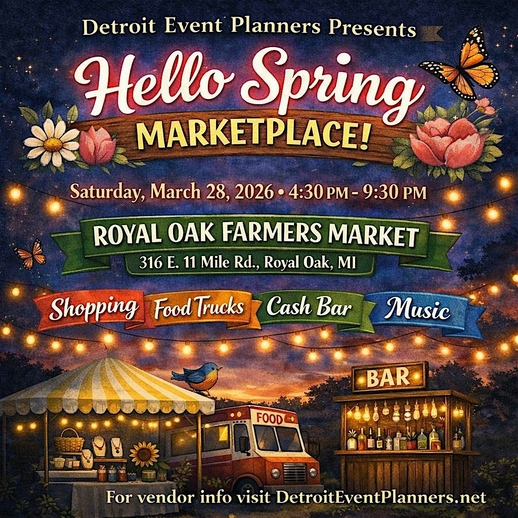 Our first marketplace of 2026 will be our Hello Spring Marketplace which will be filled with over 80 vendors, food trucks, and cash bar.About this Event