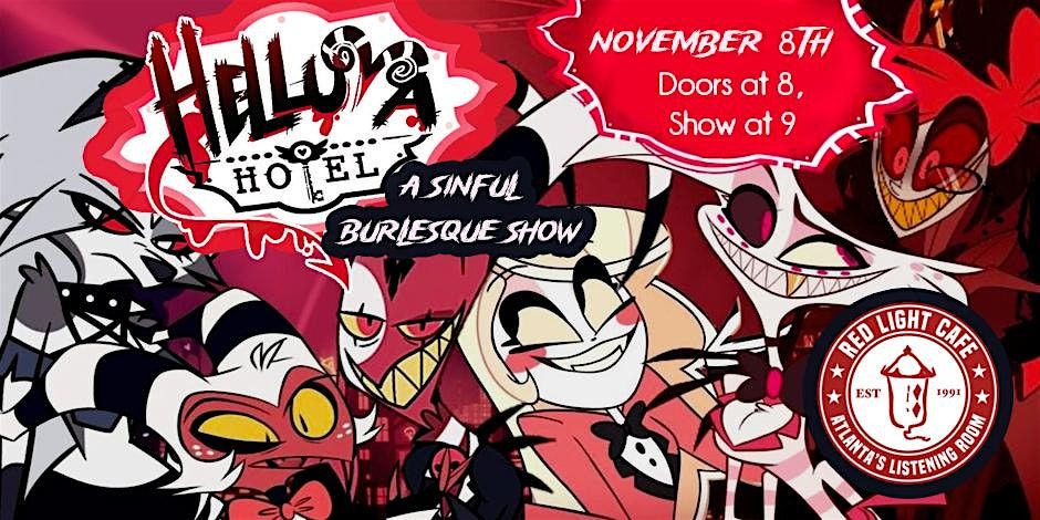 This November 8th at Red Light Cafe, you're in for a hotter than hell Burlesque show! See characters from both Helluva Boss and Hazbin Hotel combined in a ONE NIGHT BURLESQUE AFFAIR! Enjoy seeing our diverse cast of Demons and Angels take the stage in explosive, glittery fashion! We've got 10+ Acts, each one showcasing a favorite moment or character from the shows!