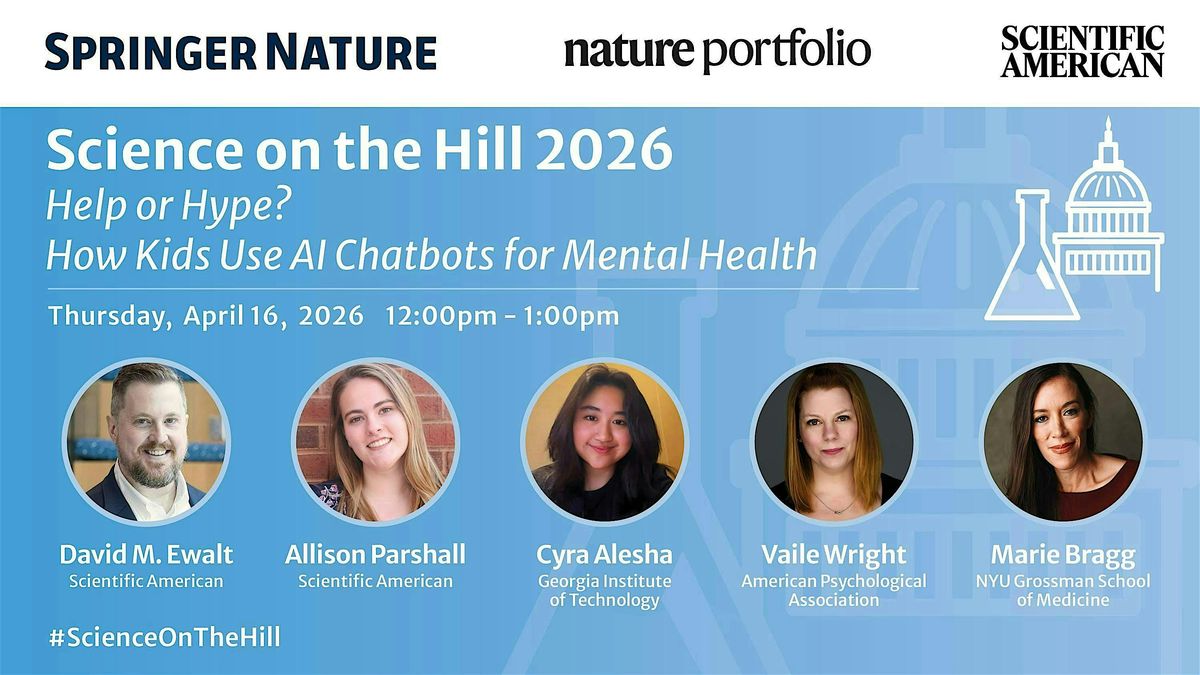 Hosted by Springer Nature Group, Scientific American, and Nature Portfolio, this event is designed to give congressional staff an engaging, science‑grounded look at one of today’s fastest‑moving policy challenges that directly affects youth, families, and communities in every district.