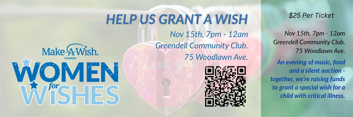 Join us at the Greendell Park Community Centre for our Help us Grant a Wish Social/Fundraiser event! Let's come together to make dreams come true for a child with a critical illness. Enjoy a fun-filled evening of music, food, and community spirit. Your support will make a difference in a someone's life. Don't miss out on this opportunity to give back and have a great time doing it. See you there!