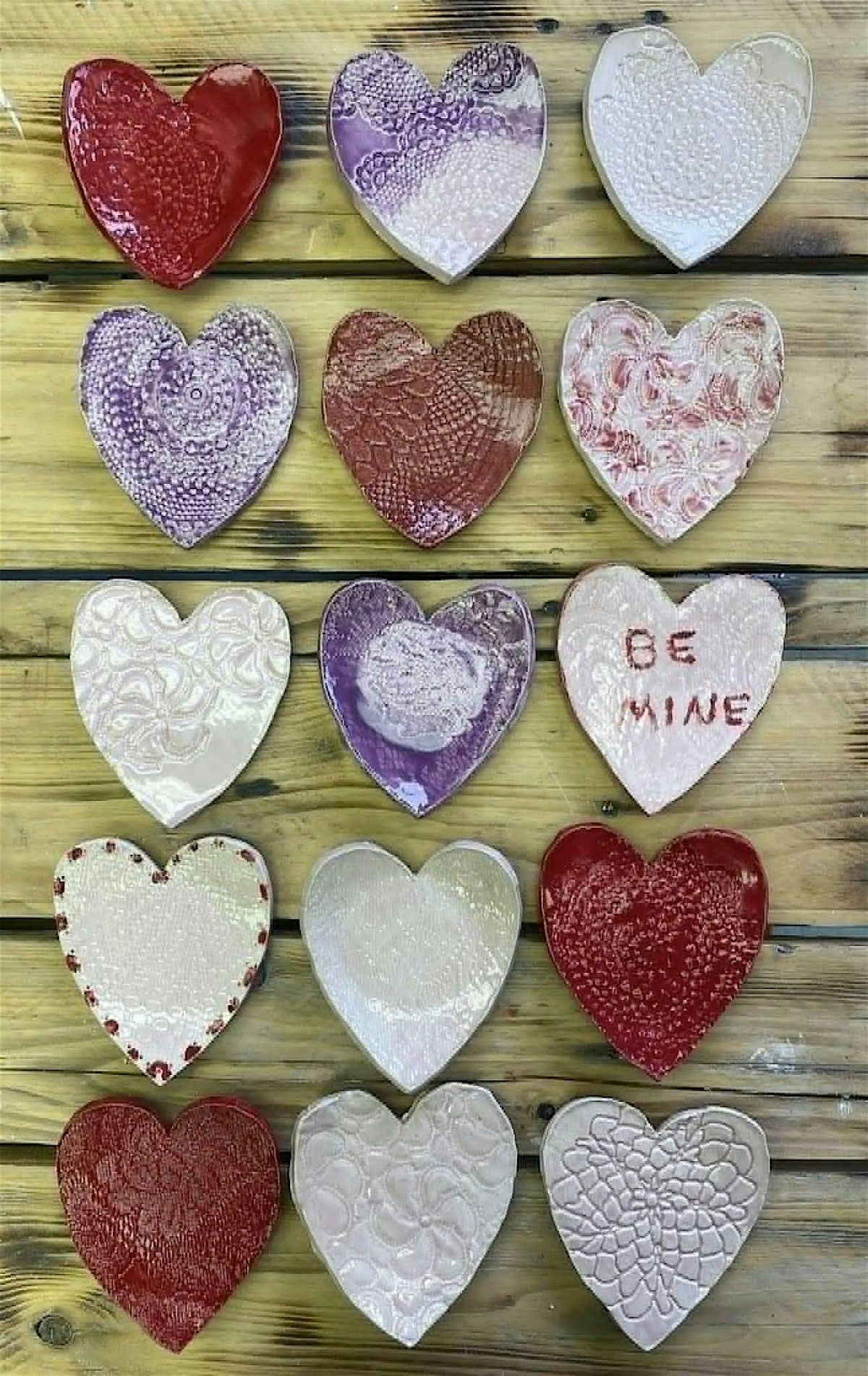 A unique, parent & me, hands-on pottery event to create heart-shaped clay dishes PERFECT for holding jewelry, rings, small treasures and more. Each event session should take about 2 hours (creating your clay dish and glazing it.) Your dish will then be taken to be fired by our teacher and friend, Erin Weybright. The firing process will take about a week and your projects will be ready for pick up or delivery* the following week.