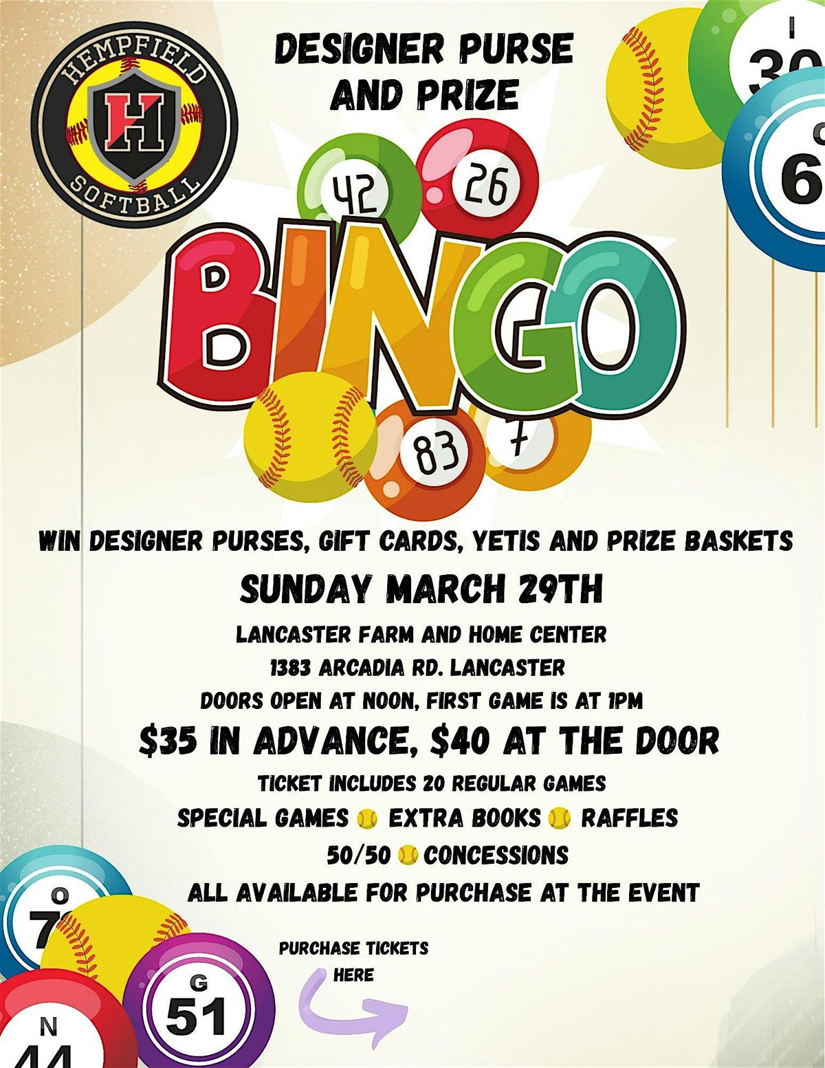 Hempfield HS Softball Designer Purse and Prize Bingo