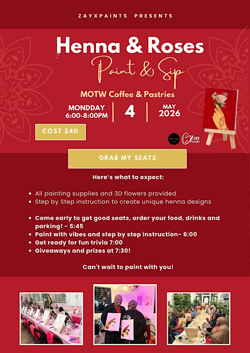 Join us at MOTW Muslims of the World Café for an evening of creativity, beauty, and self-expression. Whether you're an artist or just looking for a elevated night out, Henna and Roses is an event celebrating beauty and creativity.