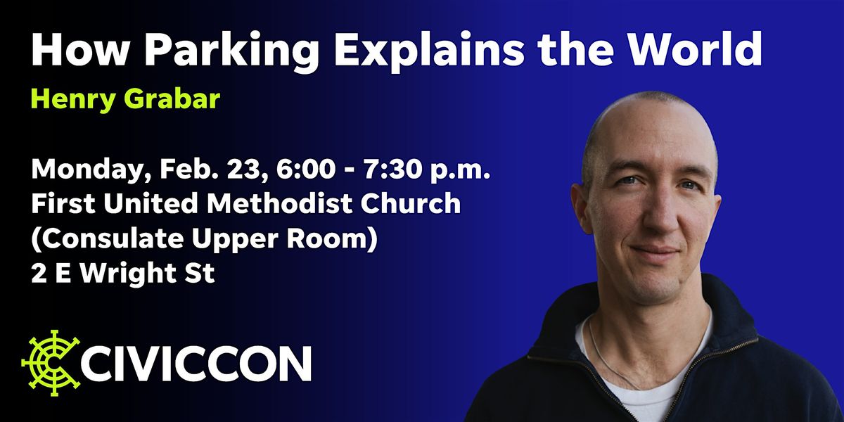 Join CivicCon for a free, public conversation with Henry Grabar, journalist and author of Paved Paradise: How Parking Explains the World, on how parking has come to dominate the American built environment and what that has cost our cities. Since the rise of the automobile, we have reshaped our neighborhoods in a relentless quest for car storage, devoting enormous amounts of valuable land to empty vehicles.