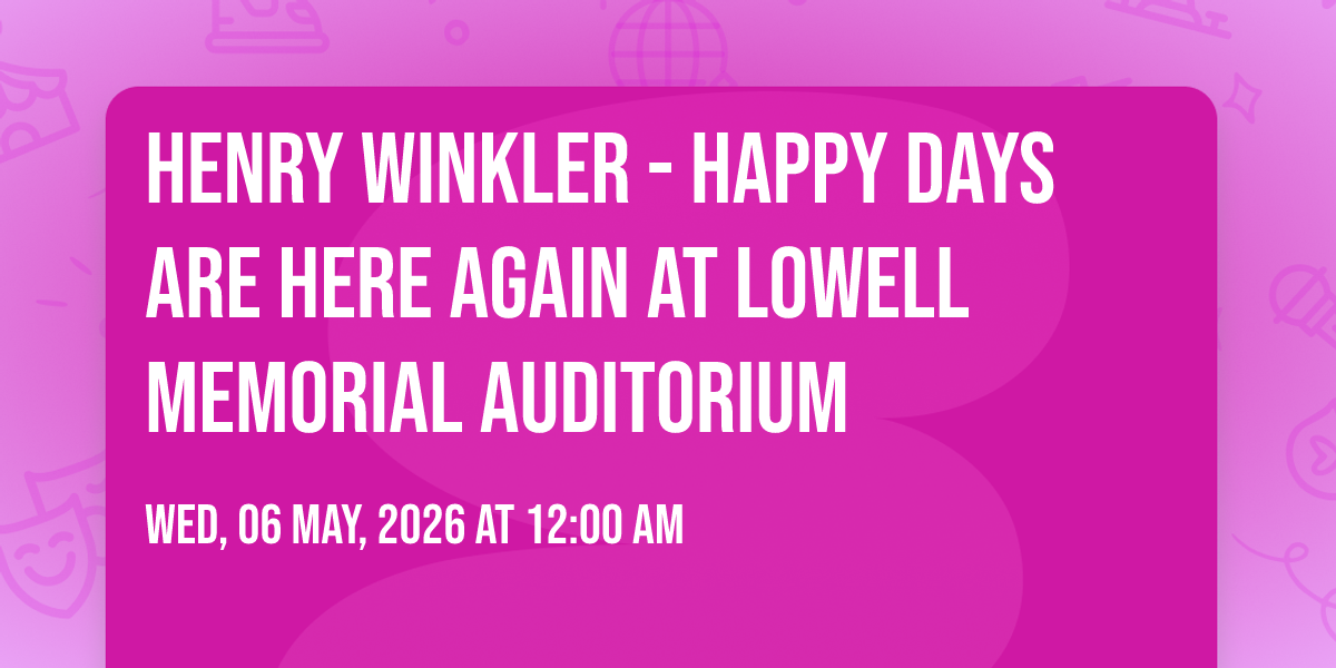 π Journey into wonder at Henry Winkler - Happy Days Are Here Again at Lowell Memorial Auditorium, where extraordinary experiences await around every corner! ποΈ Set against the backdrop of Lowell Memorial Auditorium in dynamic Lowell, MA, this event promises to exceed all expectations. π Join us on May 6th, 2026 at 08:00 PM for a celebration that combines innovation, entertainment, and community spirit in perfect harmony. β¨ There will be an atmosphere where memories are made and stories come alive, ensuring every guest experiences something truly remarkable. π This is more than just an event; it's a journey into the extraordinary!