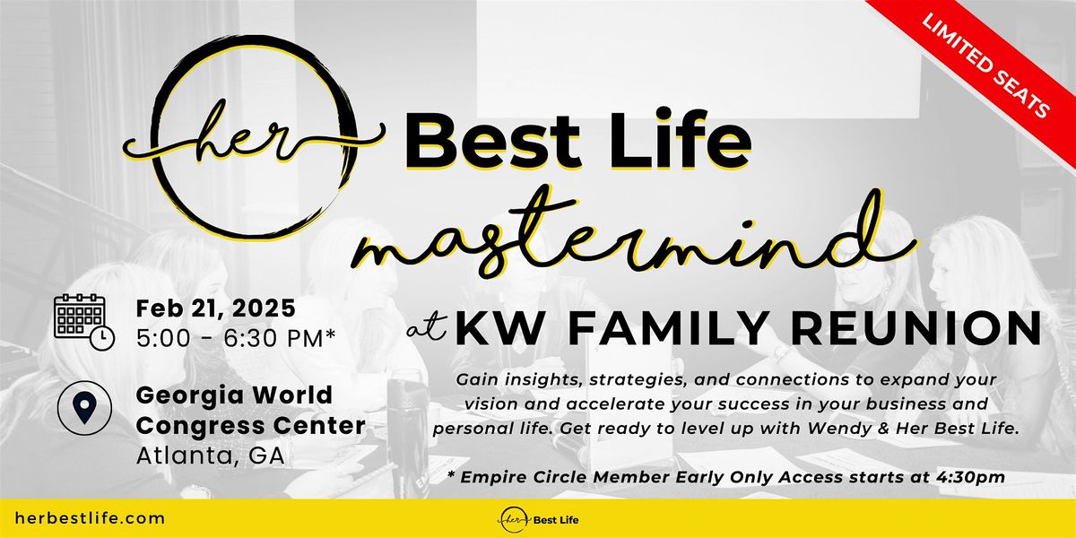 Welcome to the Her Best Life Mastermind event! Join us for an exciting in-person gathering at the Georgia World Congress Center where you'll connect with like-minded individuals ready to elevate their lives. This event is your opportunity to learn, grow, and thrive in a supportive community of women. Get ready to dive into empowering discussions, workshops, and networking sessions designed to help you live your best life. Don't miss out on this incredible experience! Early access for Empire Circle Members Only starts at 4:30pm.