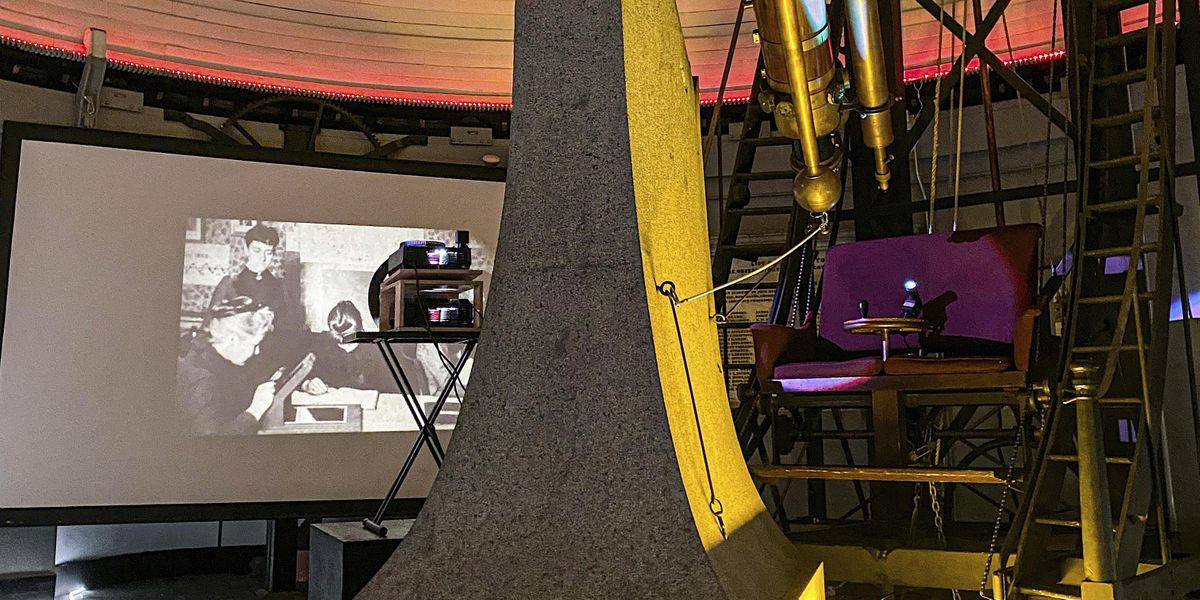 Aura Satz’s installation piece, , will be on view in the dome of the Great Refractor. Inspired by Henrietta Swan Leavitt and the Women Astronomical Computers, the slide-based installation uses a blink comparator to juxtapose archival images of the Women Astronomical Computers in the workplace, craters on the moon named after women astronomers, as well as glass plates with annotations and marks made by the women, many of which were erased during the DASCH project. A blink comparator is a device used by astronomers to detect small pattern differences on astronomical glass plate photographs by alternating quickly back and forth between two images. Satz chose the format of a blink comparator to invite the viewer to consider the labor and expertise involved in this detailed work. Satz’s artwork will be on view with the Great Refractor telescope first used in 1847, and for its first 50 years not allowed to be used by women.
