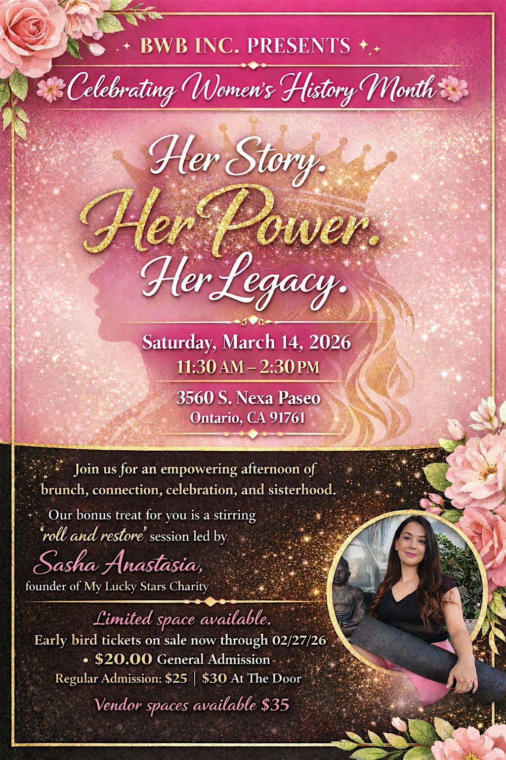 Join us on Saturday, March 14, 2026, from 11:30 AM to 2:30 PM in Ontario, CA, for an intimate gathering designed to celebrate the strength, resilience, and impact of women.
