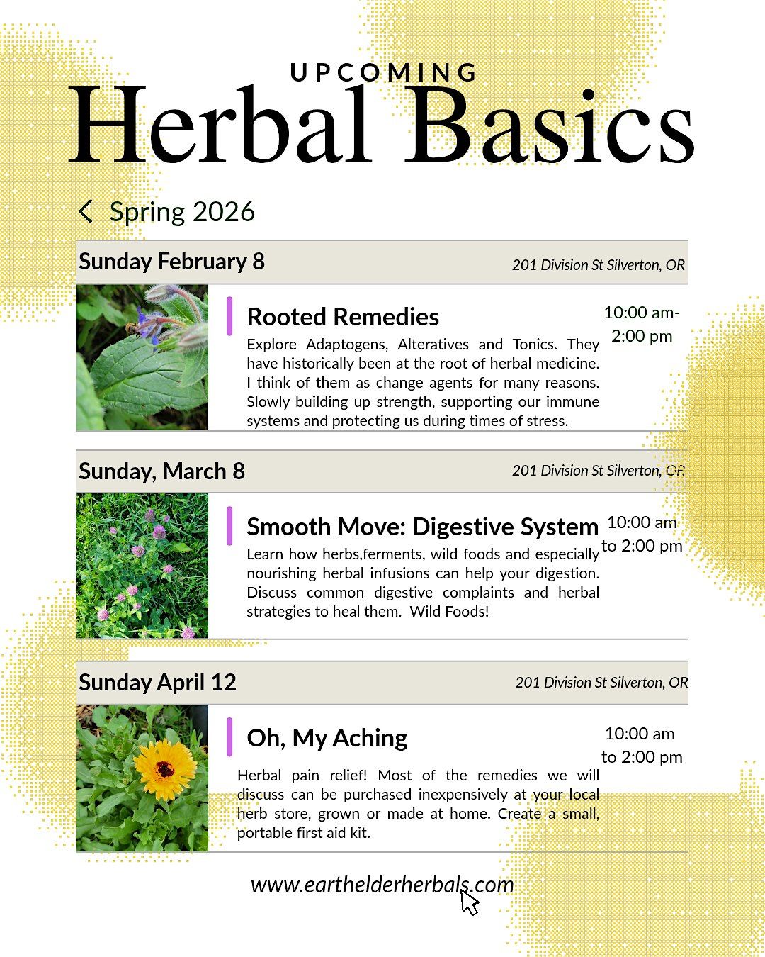 Herbal Basics is for those who want to learn to confidently use locally available herbs and “weeds" in a fun, casual setting.