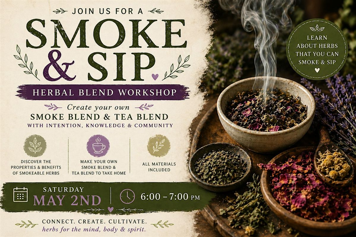 Join us for Smoke & Sip: Herbal Blend Workshop, where you’ll explore the world of plant medicine and learn how to create your own custom tea blends and herbal smoke blends with intention.