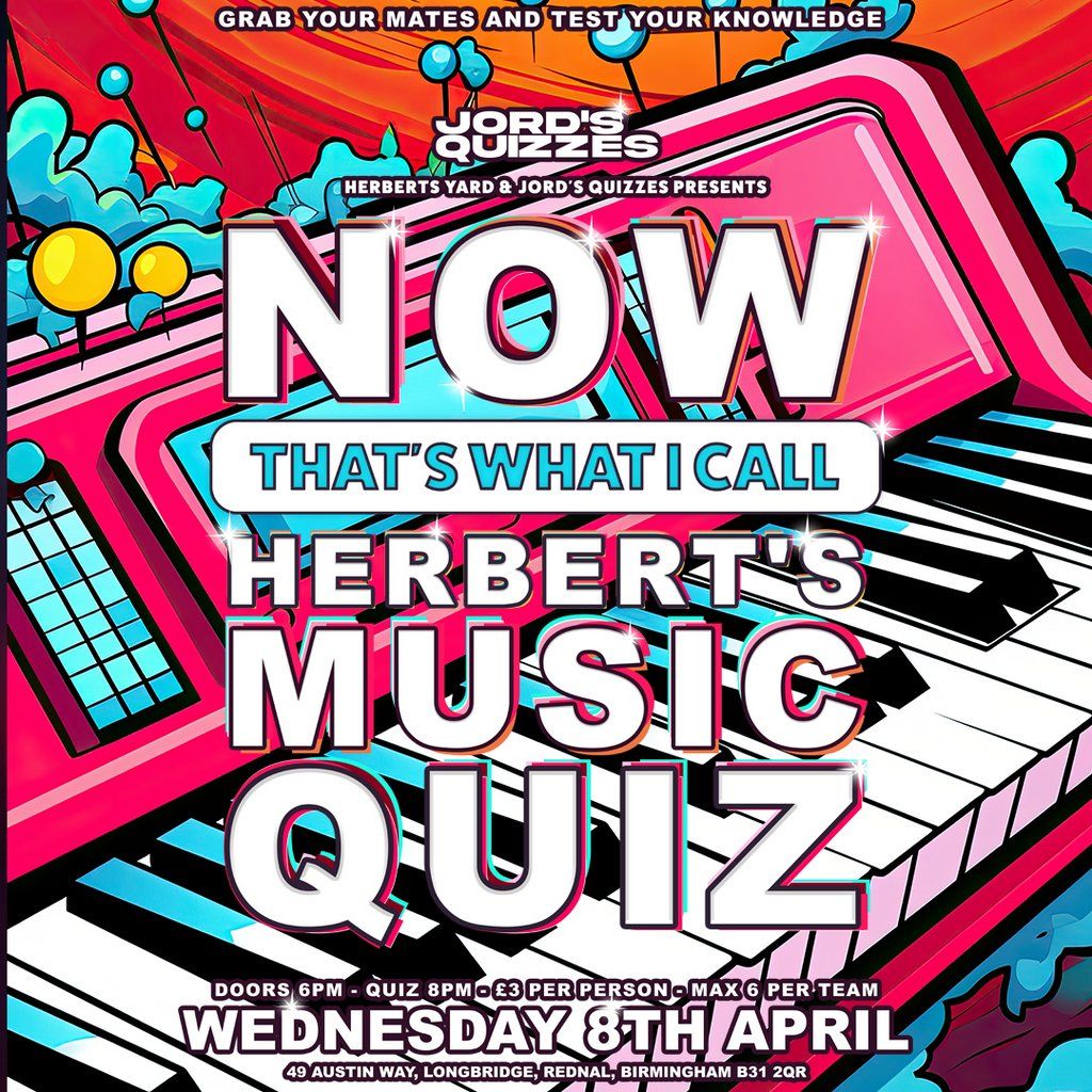 NOW That's What I Call Herbert's Quiz lands at Herbert's Yard for a midweek night of big tunes and even bigger competition.