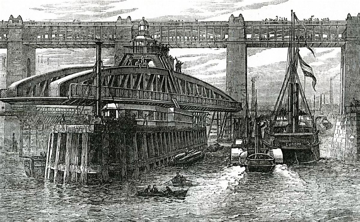 The bridge was designed by the visionary and engineering genius Lord Armstrong using his favourite method of pressurised water to power hydraulics engines to turn the central span of the bridge, which opened for passengers in June 1876 and for ships a month later.