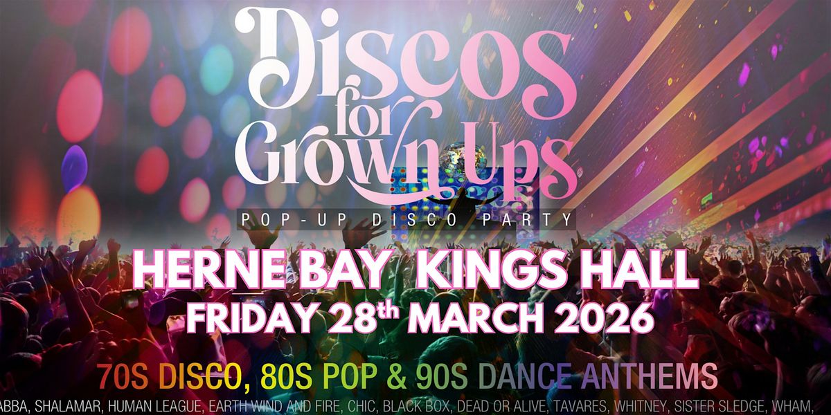 The legendary DISCOS FOR GROWN UPS pop-up disco party is coming back to the KINGS HALL, Herne Bay for another incredible night of boogie