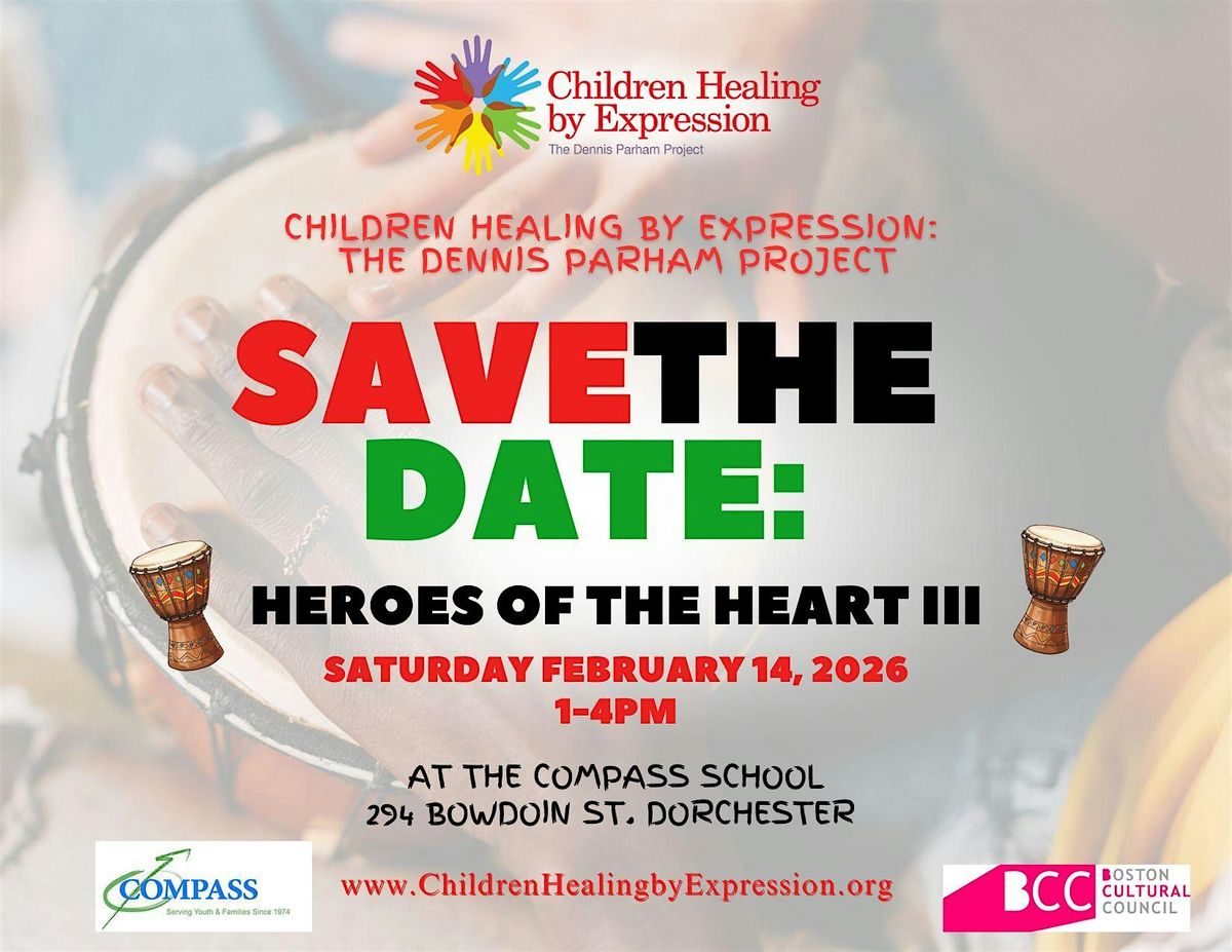 Join Children Healing by Expression: The Dennis Parham Project (CHBE) for our annual Heroes of the Heart celebration on Saturday, February 14, from 1-4pm! This is a community-centered Black History Month event honoring love, resilience, and the everyday heroes who shape our communities and uplift our children and families.