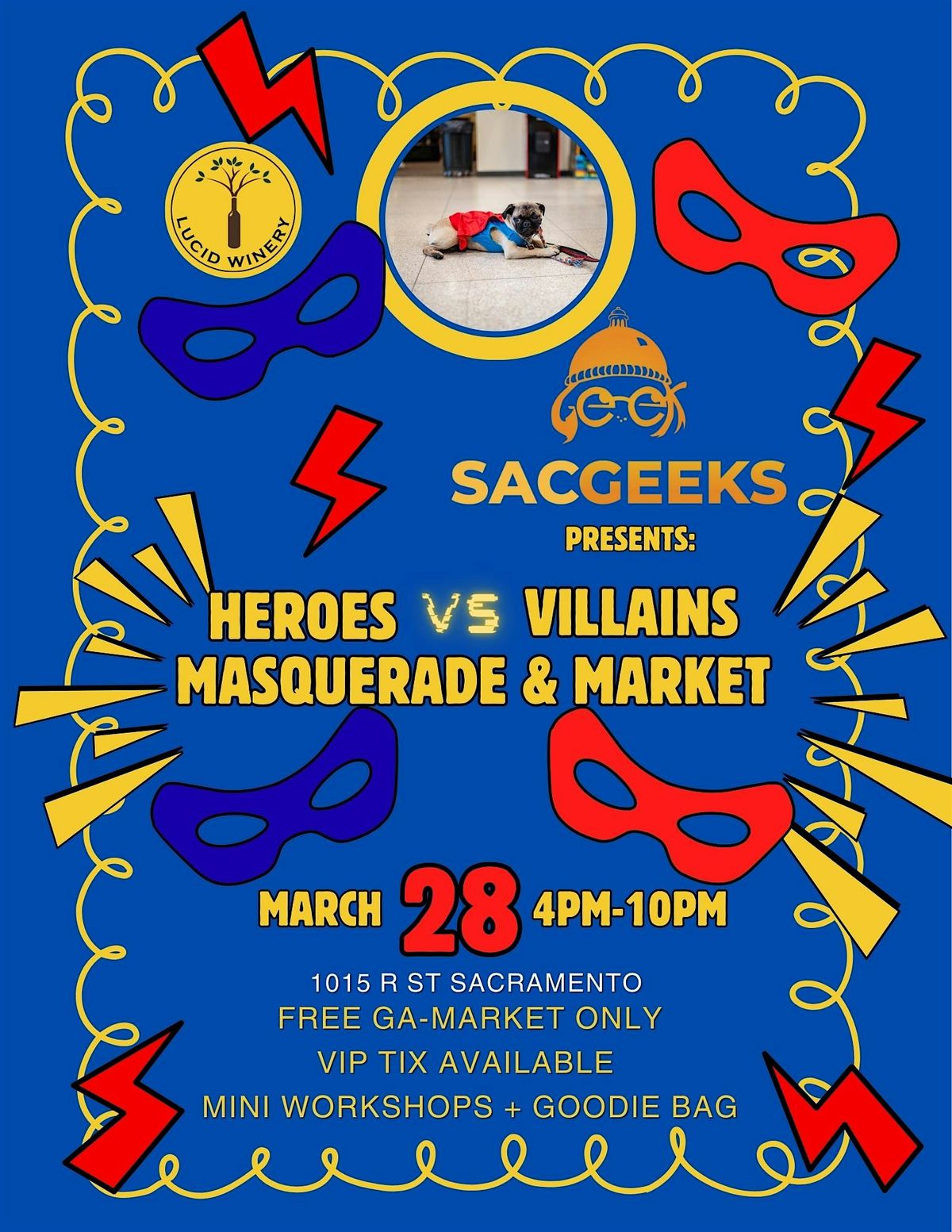 Join SacGeeks for our Heroes vs Villains Masquerade & Market, an immersive evening of fandom, fashion, and local creators set inside the beautiful Lucid Winery.