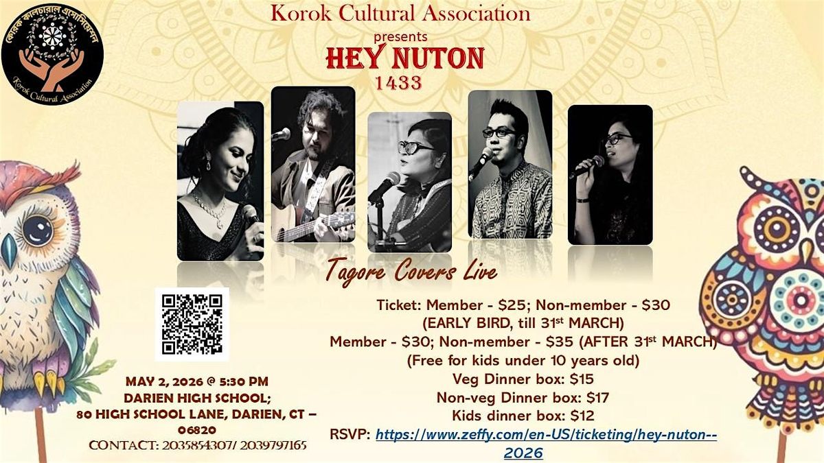 Celebrate the spirit of the Bengali New Year with an enchanting evening of Rabindra Sangeet performed live by talented artists from Tagore Covers. Hey Nuton 1433 brings together music, dance, and community to honor the timeless creations of Rabindranath Tagore.