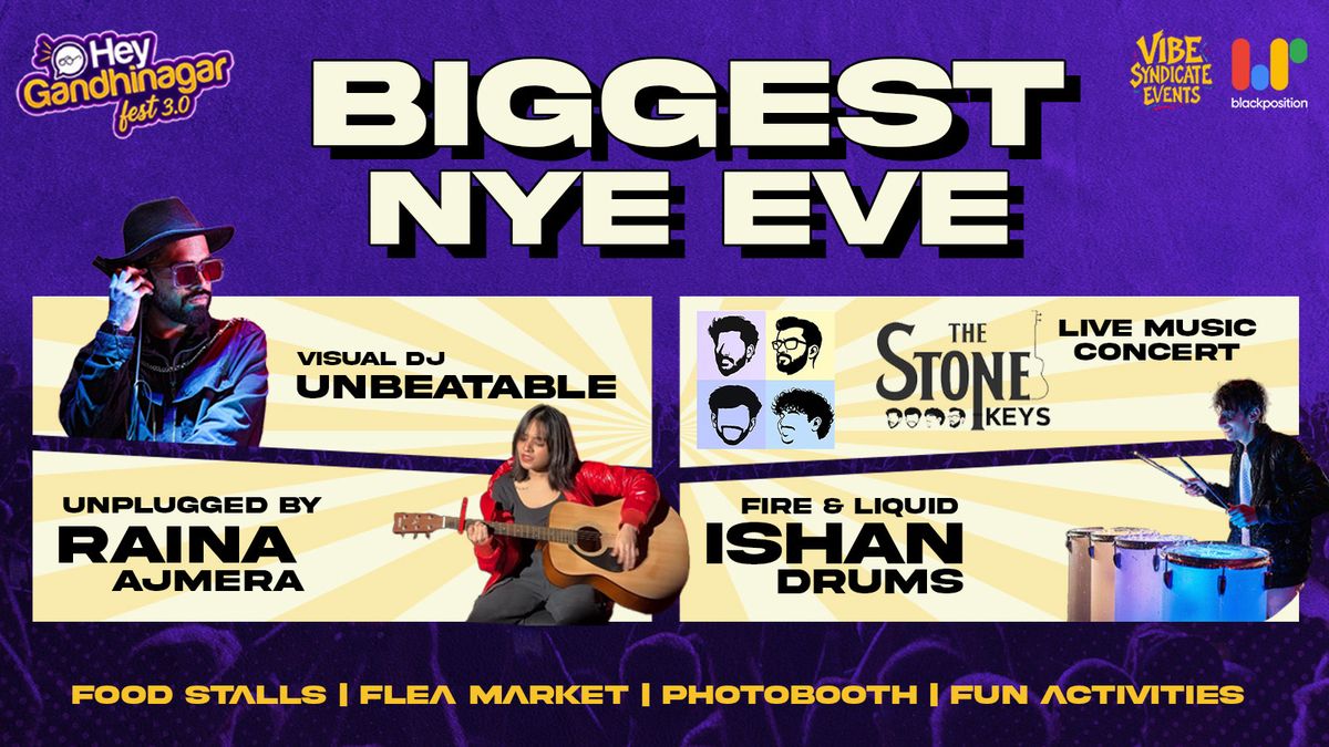 🌟 Why HG Fest 3.0 Is THE New Year Party You Can’t Miss🎧 Gujarat’s Top-Ranked DJ – Groove to electrifying beats all night long!🎆 Fireworks + SFX – A breathtaking midnight moment to welcome 2026.🎇 Mesmerizing LED Visuals – A world-class immersive stage experience.🎉 Pre-DJ Party Lineup : Games 🎯 Live Band 🎸 Standup Comedy 😂 Surprise Acts ✨🏟️ Massive Arena, Massive Vibes📍 55,000+ sq. ft. Party Plot – More space, more energy, more fun!🅿️ Huge Parking Area – Zero stress, only celebration!🛍️ Food & Shopping Stalls – Delicious bites + festive shopping!👶 Kids Zone with Jumping Castle – Free entry for kids under 10! 🧒🎁👥 4000+ Expected Crowd – The biggest New Year gathering in the city!🔥 What Makes HG Fest Stand Out✨ Biggest New Year Party in Gandhinagar✨ Returning after two blockbuster years✨ Safe, secure & perfectly managed✨ A place where friends, families & all generations celebrate together✨ A New Year night you’ll remember forever🎊 End 2025 with UNSTOPPABLE MADNESS!If you're looking for energy, entertainment, vibes, safety & unforgettable moments HG Fest 3.0 is exactly where you NEED to be!