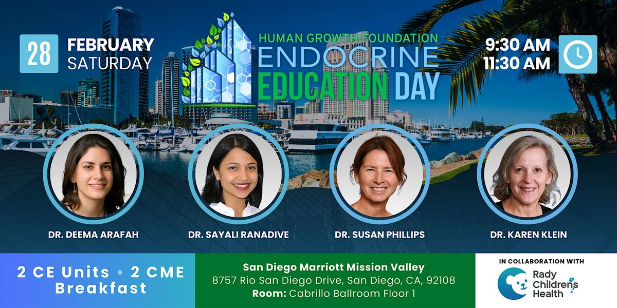 The Human Growth Foundation (HGF) invites you to the HGF Pediatric Endocrine Education Day - San Diego —a meaningful event centered on education, awareness, and empowerment for physicians, nurses, patients, families, and the wider community.