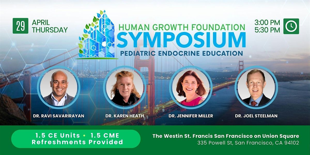The Human Growth Foundation invites healthcare providers and specialists to join us for the Pediatric Endocrine Education Symposium on Thursday, April 29, 2026, from 3:00 PM – 5:30 PM at The Westin St. Francis San Francisco on Union Square.