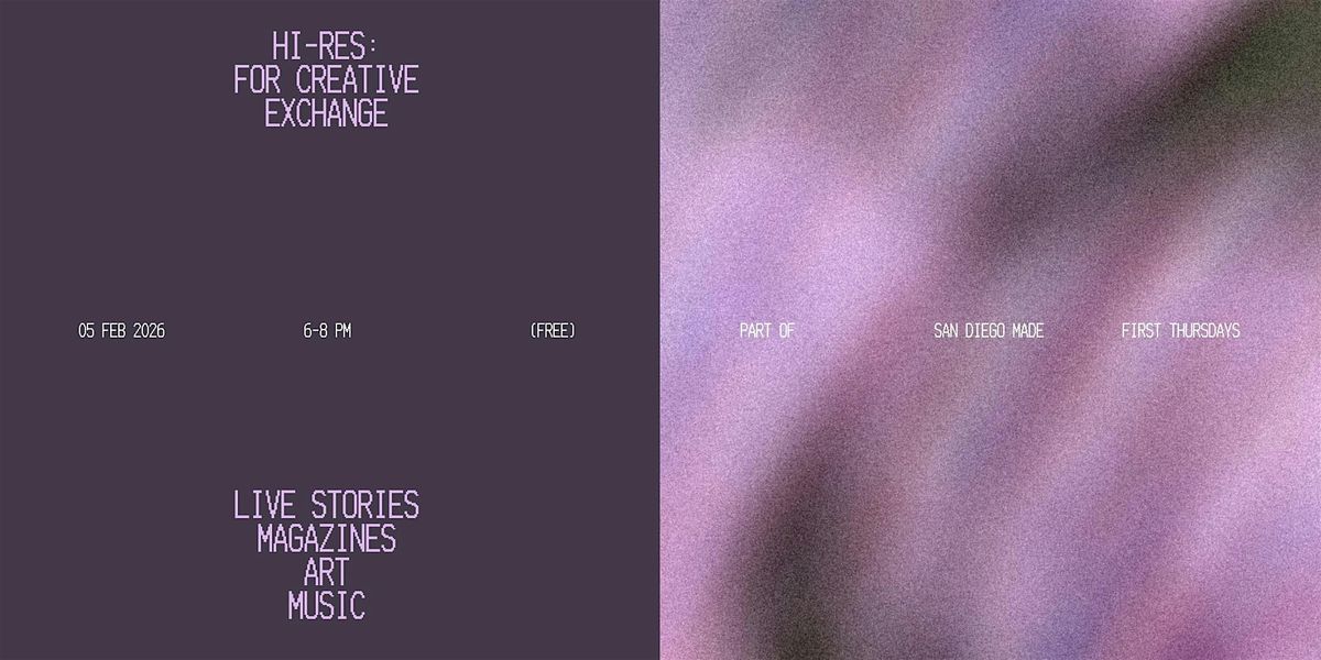 Join us for the launch of the Hi-Res live storytelling series, a platform for creative exchange, bringing creativity and community into focus by creating space for connection and conversation. This event will be curated monthly as part of San Diego Made First Thursdays at the San Diego Made Factory, 2031 Commercial St., SD CA 92113.