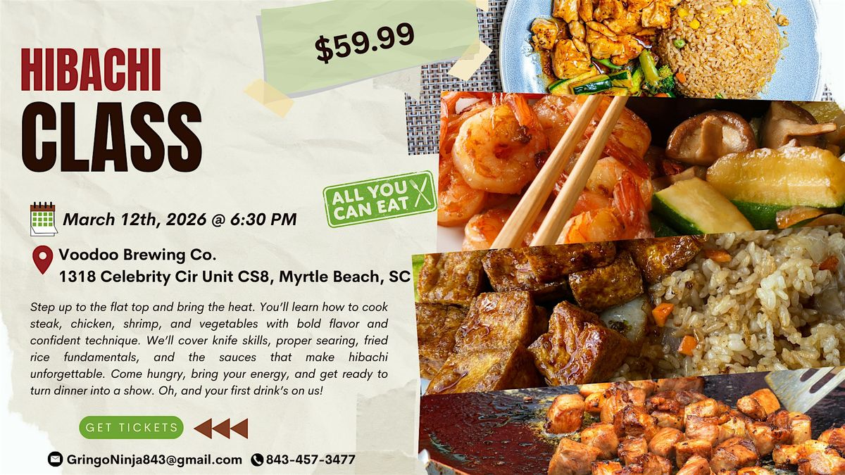 Get ready for an unforgettable hibachi experience! In this fun and interactive class, you'll grill a full hibachi meal, complete with juicy proteins, the perfect fried rice and flavorful veggies. Master jaw dropping Hibachi Tricks like the iconic onion volcano, egg flip, and shrimp toss. Create and take home your very own yum yum sauce to add that authentic hibachi flavor to your meals. This class is packed with hands-on cooking, exciting demonstrations, and plenty of laughs, all while enjoying the delicious food you’ve prepared! Cooking portion will take place outside.