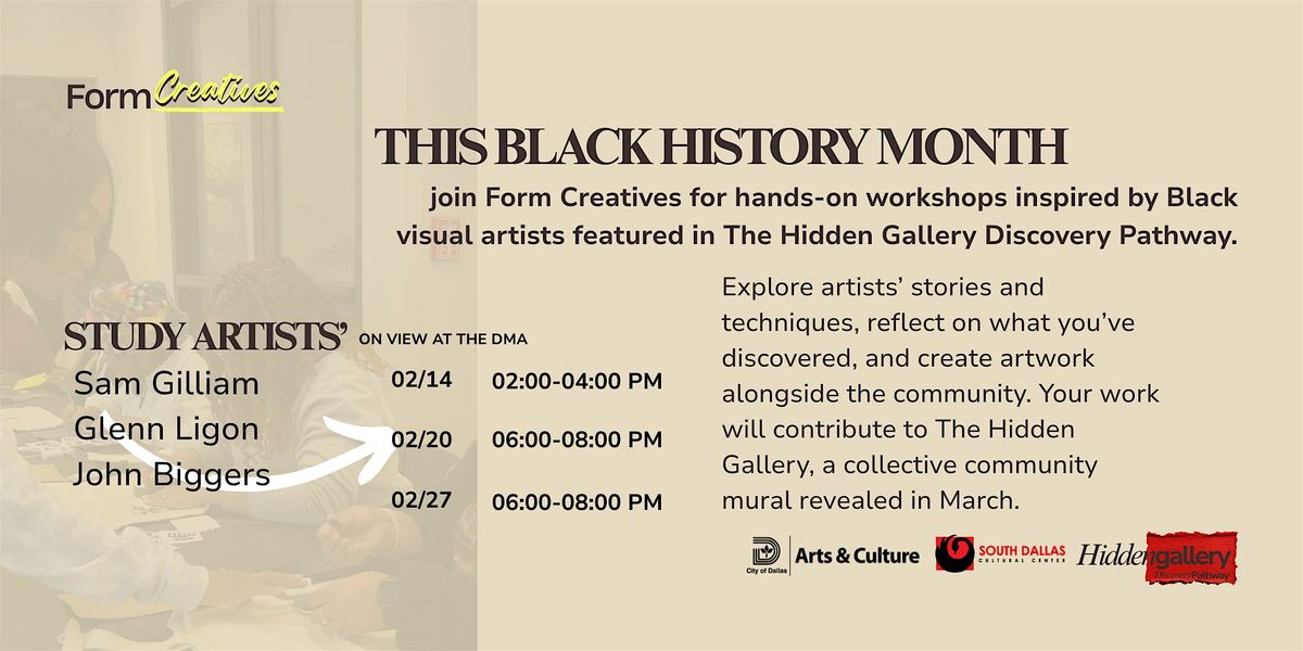 This Black History Month, join Form Creatives for hands-on workshops inspired by Black visual artists featured in The Hidden Gallery Discovery Pathway.