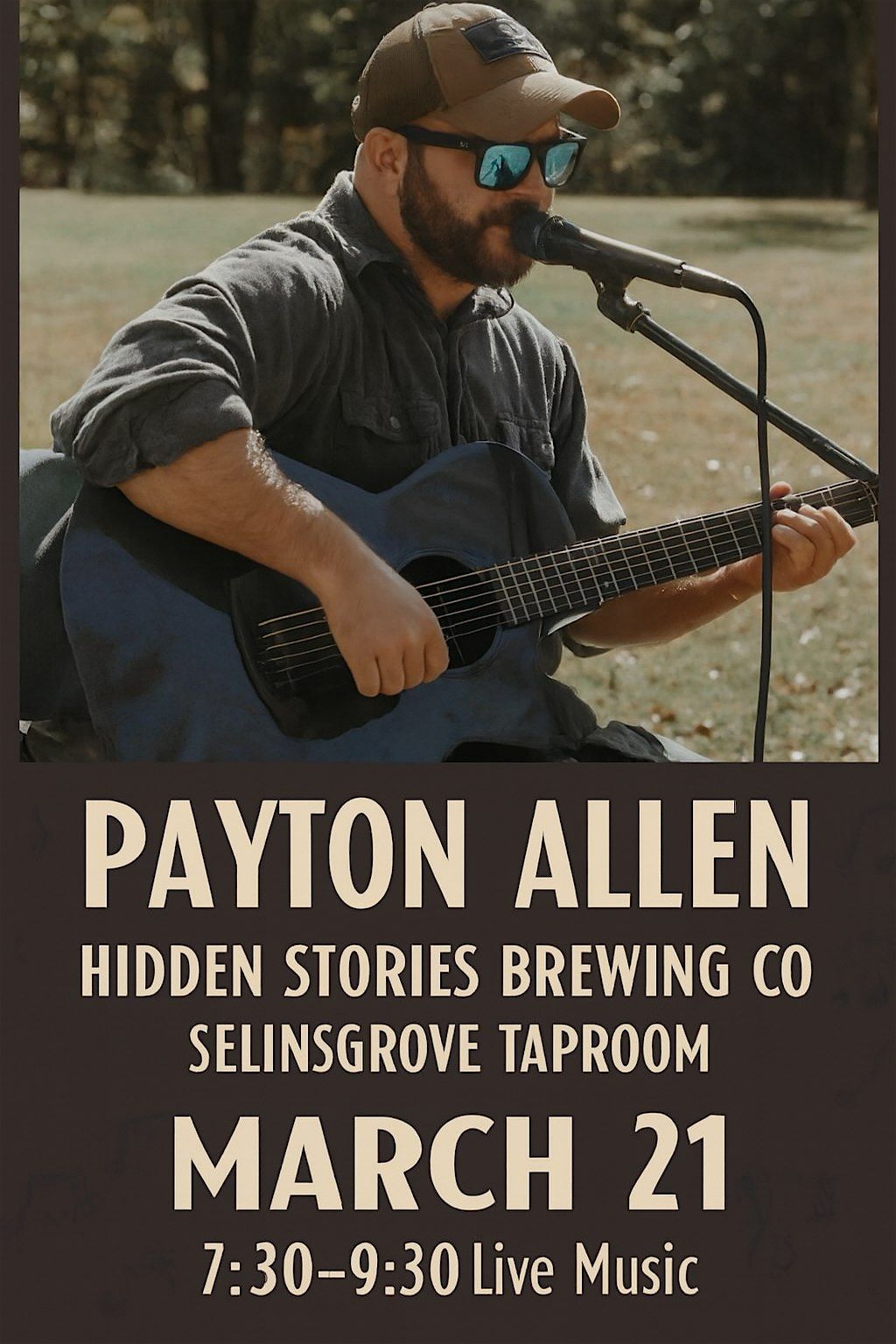Hidden Stories Brewing presents Payton Allen on March 21st 7:30-9:30 PM