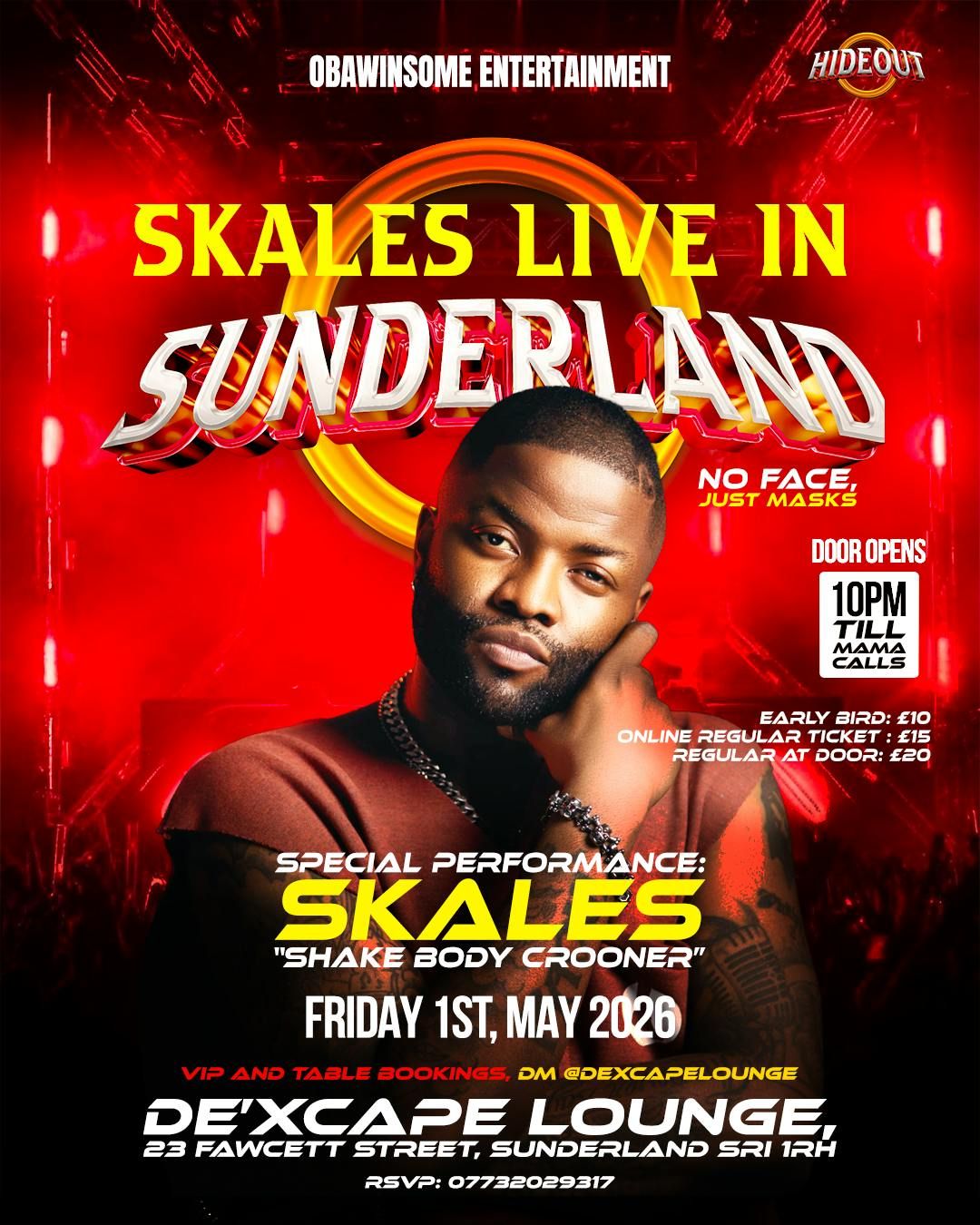 🎤 Special Performance by SKALES – the “Shake Body Crooner”📅 Friday, May 1st, 2026⏰ Doors open 10PM till Mama Calls📍 De’Xcape Lounge, Sunderland