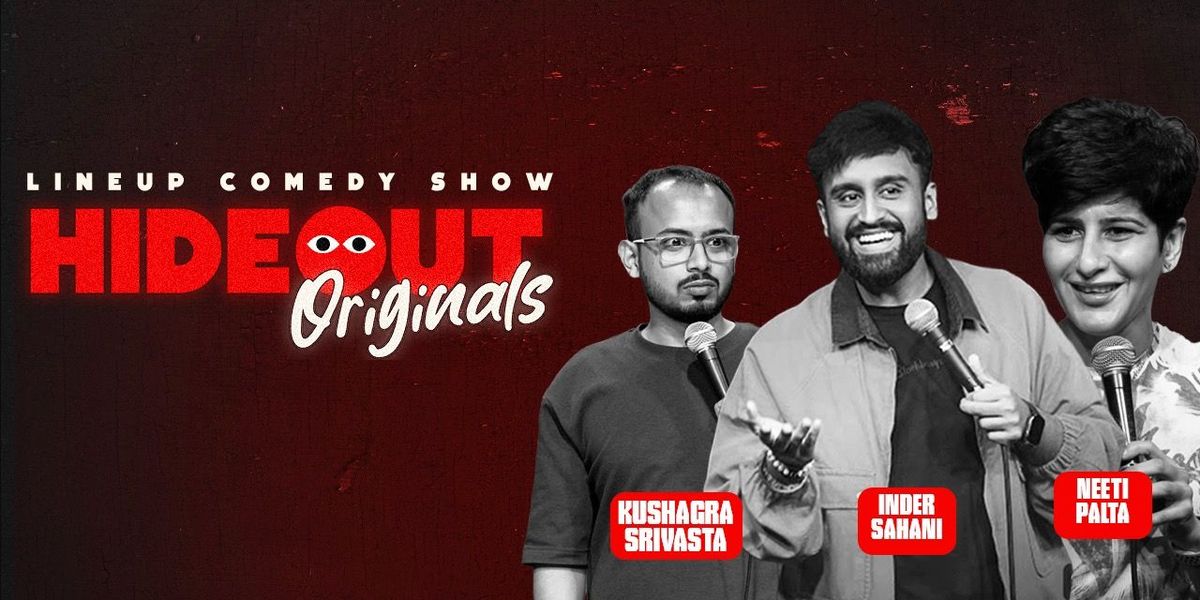 Hideout originals ft. Inder sahani, Kushagra, Neeti & Yash rathi is a stand-up comedy lineup featuring some of the funniest voices in the scene. Join as they bring their sharp observations, relatable stories and unapologetic humour to the stage for a night full of laughs. From everyday chaos to brutally honest takes on life, nothing is off limits.