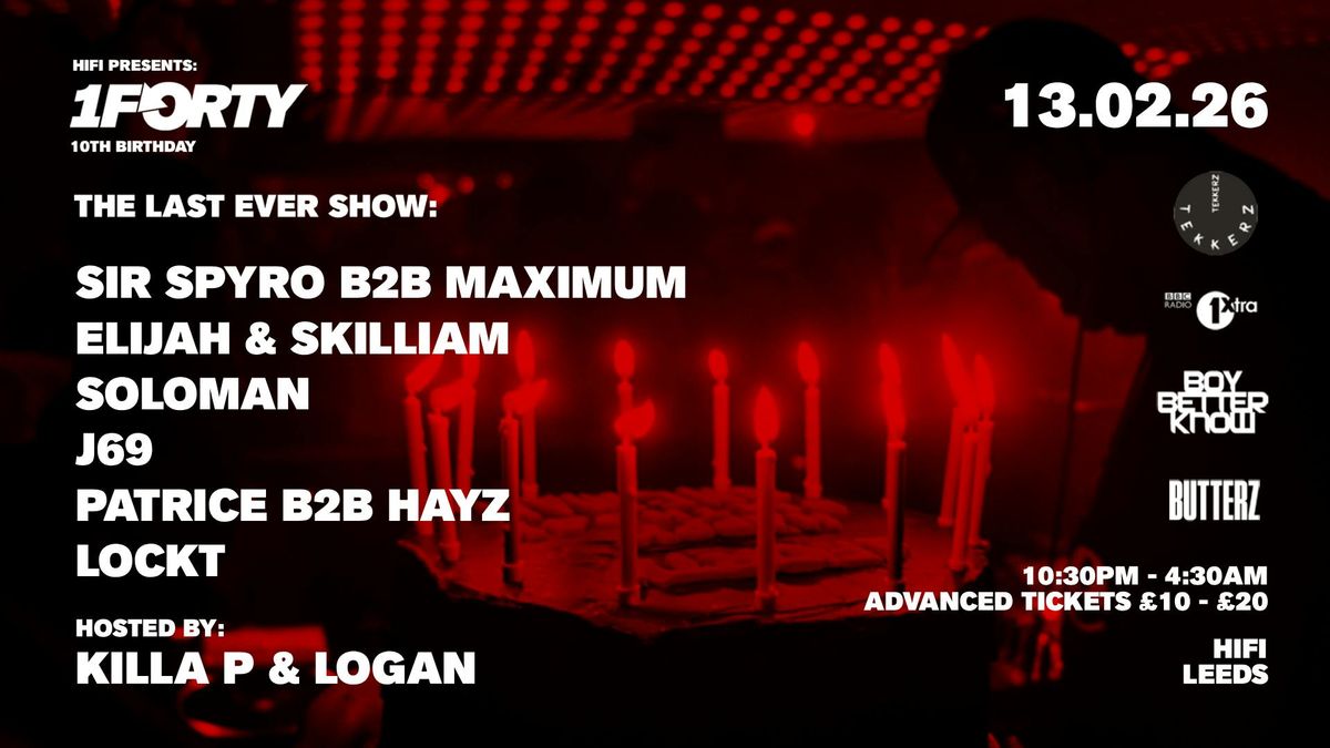 1Forty, one of the undergrounds most coveted multi-genre record labels celebrates their 10th birthday on a bitter sweet note, with it also being the last ever show.From the Mint Club eta in 2016-2019, to the HiFi and Wire era from 2021 to present, they've showcased special guests including Sammy Virji, Hamdi, Preditah, Holy Goof, Notion, Skepsis, Oppidan, Sir Spyro, Joker, Spooky, Slimzee, Drone, Girls Don’t Sync, Flowdan, Prez T, Killa P, Novelist, Capo Lee, Riko Dan, Mez, Coki, DJ Q, Chimpo, Plastician, Sicaria, Sir Hiss, DJ Pantha, Murder He Wrote, Prozak & so many more.