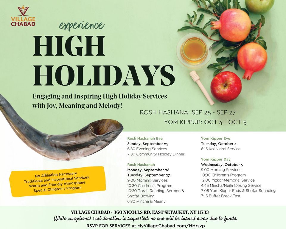 See schedule of services and RSVP at MyVillageChabad.com/HHrsvp