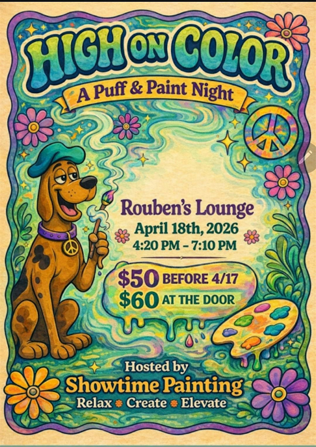 Get ready for your 4/20 with an epic in-person experience where creativity meets chill vibes! Join us for High on Color- Paint & Puff, a laid-back event perfect for letting your imagination flow while enjoying some good company. Whether you're a pro or just wanna have fun with colors, this is the spot to be. Bring your friends, your smile, and let's create some colorful memories together! Goody bags will be available for those who purchase tickets to the paint and puff. Entry is free to the events with proof of purchase from the saints dispensary next door. Free entry does not include painting.