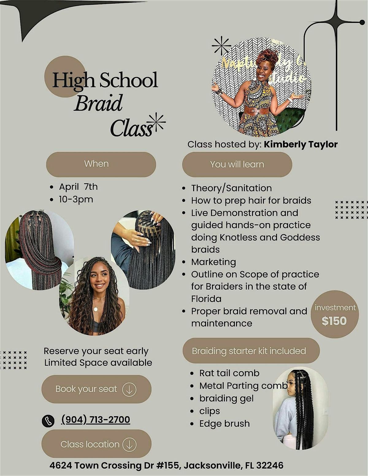 Get ready to level up your braiding skills in this in-person class designed just for high schoolers! Whether you're a braid newbie or looking to perfect your technique, this is the spot to learn cool styles and earn your certification. Bring your creativity and have fun while mastering the art of braids with hands-on guidance. Don't miss out on this awesome opportunity to shine!
