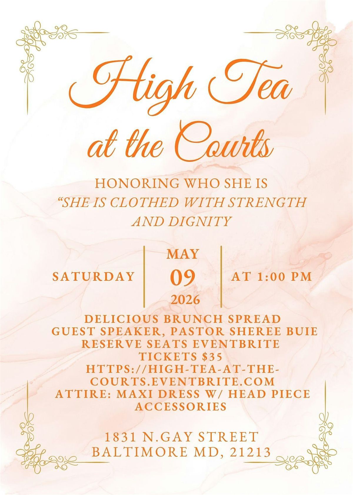 Celebrate women who nurture, lead & inspire at our elegant High tea event. Attire: maxi dress & headpiece accessories