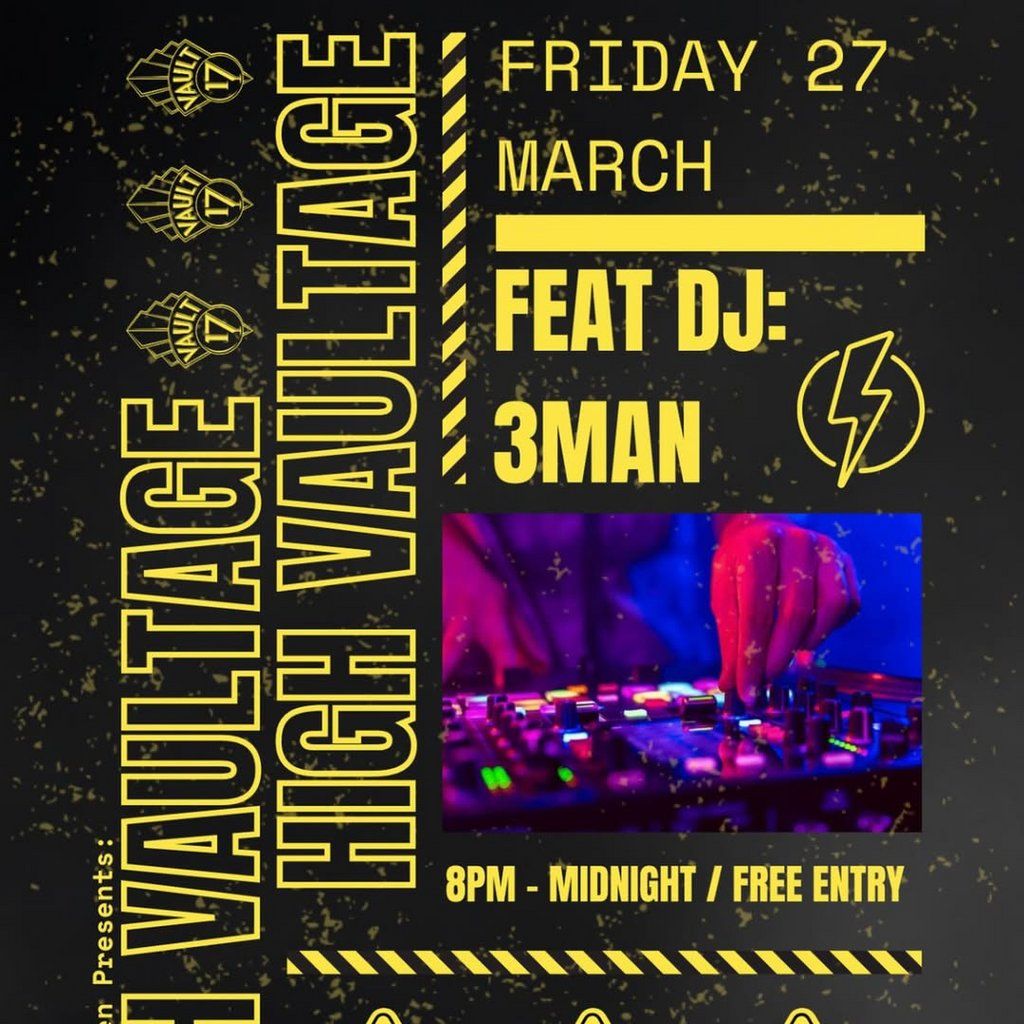 High Vaultage is back at Vault 17! Get ready to charge up your Friday night! Friday 27th March 8-12PM with an electrifying set from DJ 3MAN.