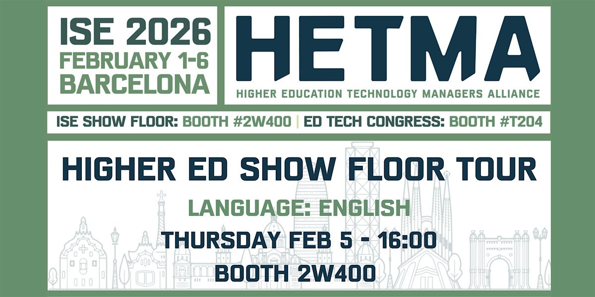 Join HETMA for a guided Higher Ed–focused show floor tour at Integrated Systems Europe, designed to help AV and ed tech professionals connect what they are seeing on the show floor to real campus needs.