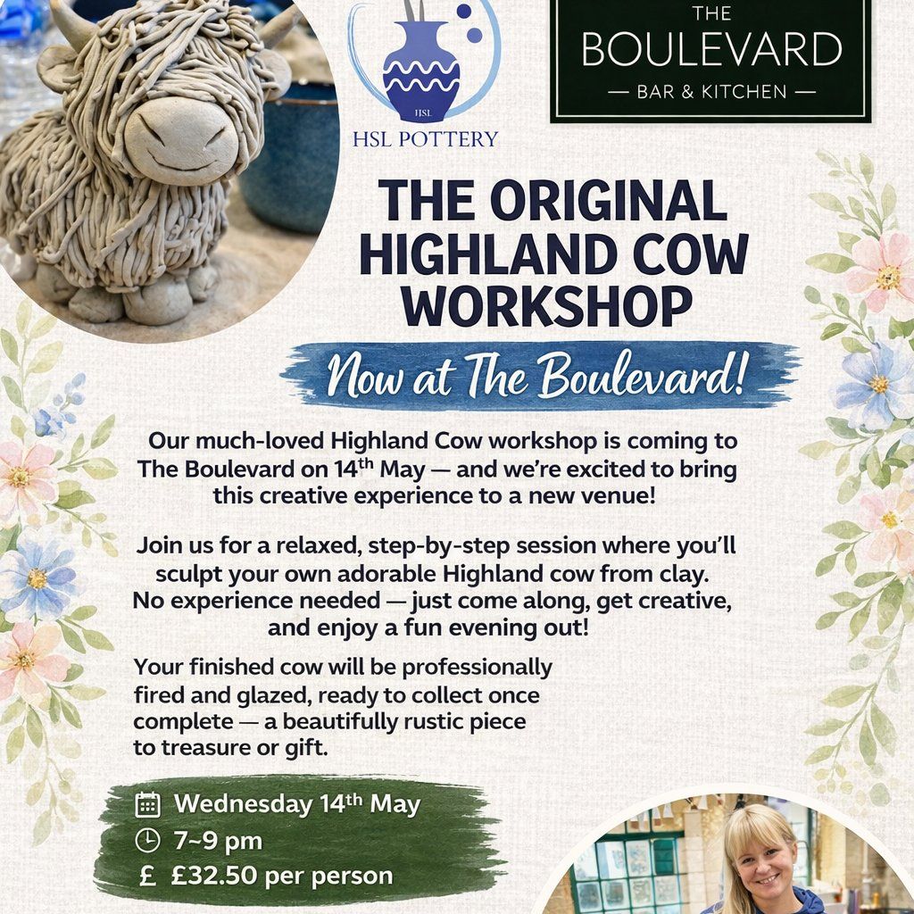Create your own Highland Cow at The Boulevard!14th May | 7-9pm | £32.50pp | No experience needed