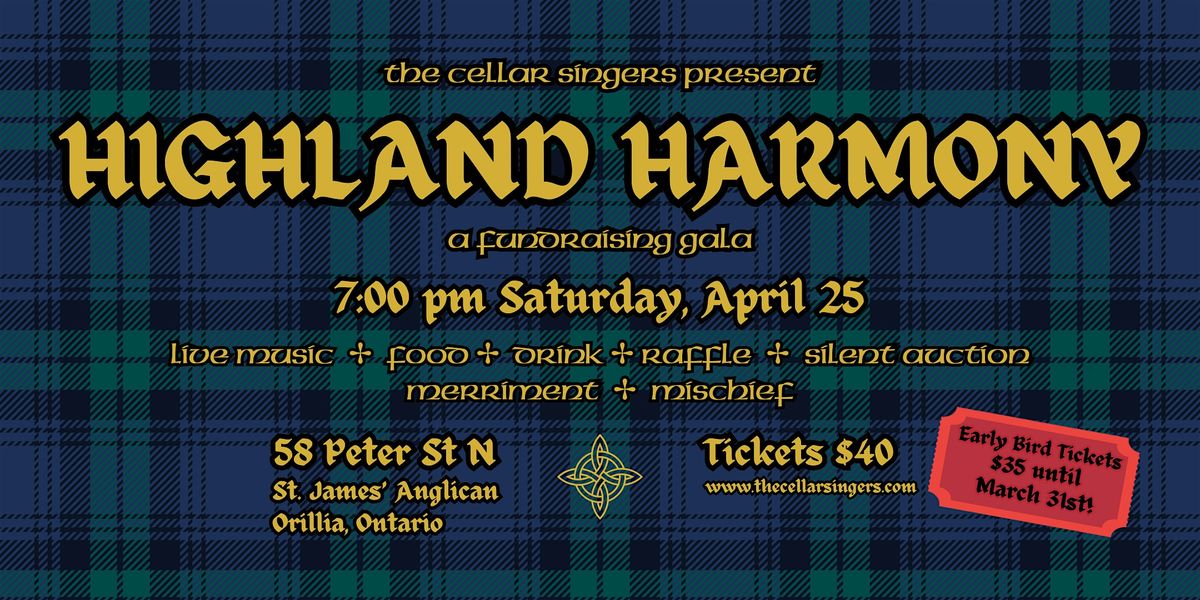 Join us for a lively celebration where the music is bold, the laughter is loud, and the spirit of a Celtic kitchen party fills the room. Highland Harmony invites you to gather with friends, raise a glass, and revel in a night of music, merriment, and a touch of mischief, right here in Orillia! ☘️ Sláinte!
