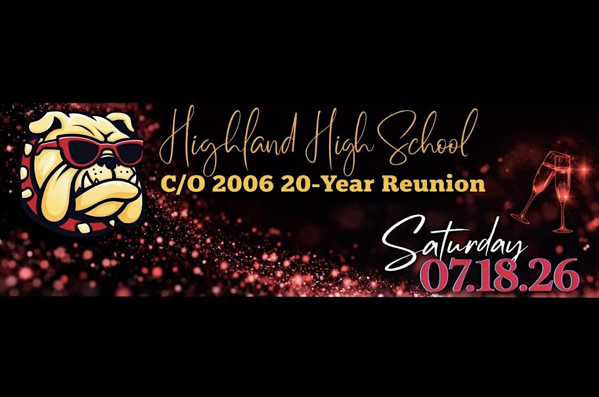 Join your fellow Bulldogs from the Highland High School Class of 2006 for a night of great memories, laughter, music, and fun. Whether you've stayed in touch or haven't seen classmates in years, this reunion is the perfect opportunity to catch up and enjoy an unforgettable evening together.