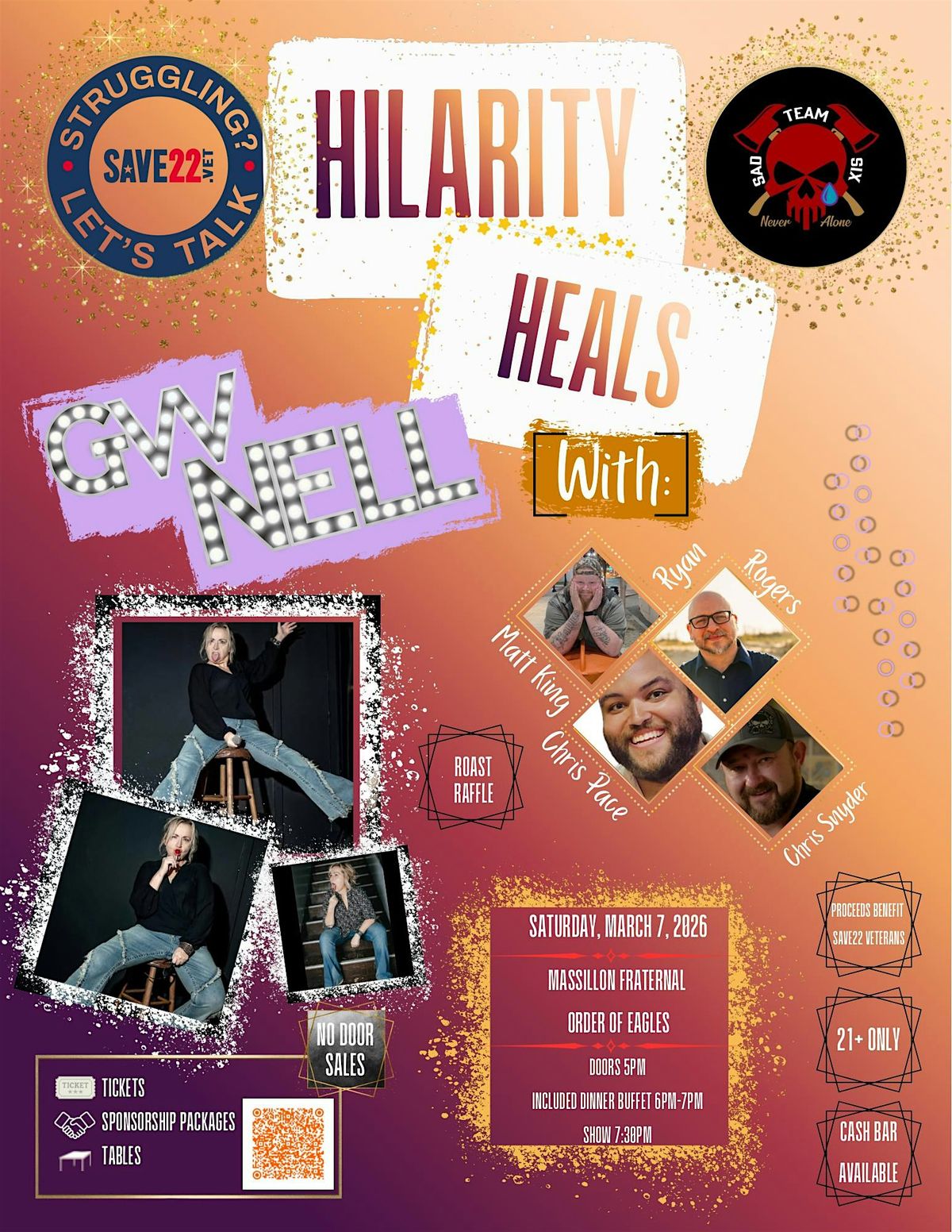 Join us for an evening of food and laughter and support for our veterans with SAVE22!