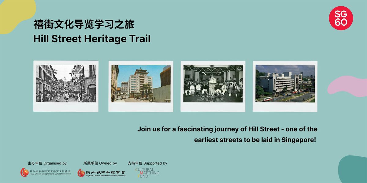 In conjunction with SG60, the Singapore Chinese Chamber of Commerce & Industry (SCCCI) has specially launched the Hill Street Heritage Trail. Established in 1906, the premises of SCCCI is situated at 47 Hill Street from 1906 to the present-day. Through the Hill Street Heritage Trail, participants will explore the history of iconic and cherished landmarks along this historic street.